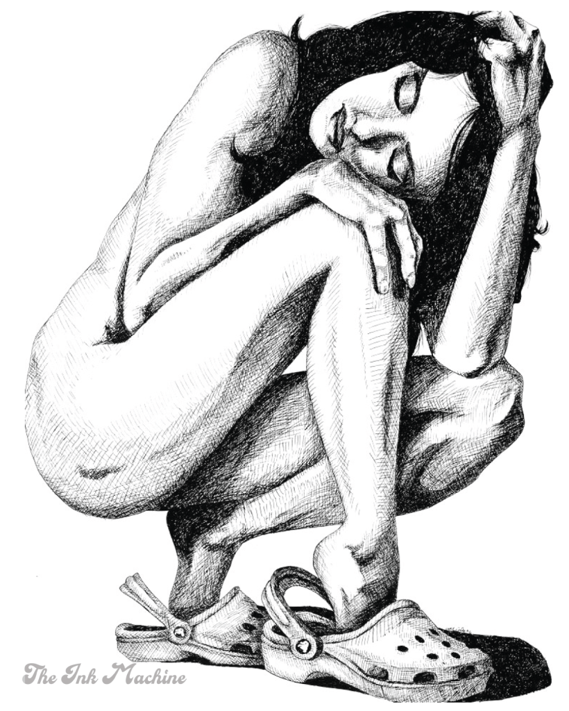 An 8″x10″ print of a nude woman sporting croc shoes. Full-color on thick cardstock.